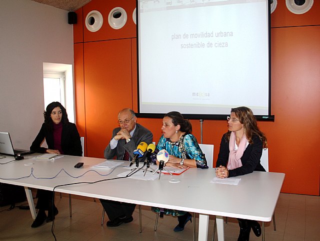 La directora general de Transportes y Puertos, Carmen Sandoval, y el alcalde de Cieza, Francisco Tamayo, presentaron hoy el Plan de Movilidad Sostenible del municipio, que contempla un conjunto de propuestas que contribuirán al ahorro energético y la reducción de la contaminación, a través del fomento de la movilidad ciclista y peatonal.