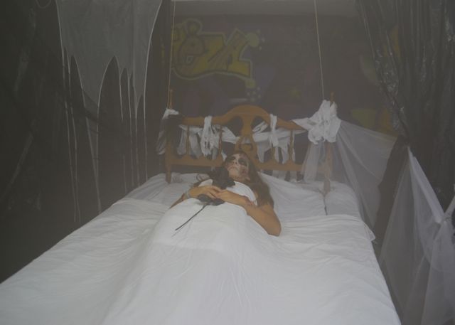 Un montaje de escenografía oscura con momentos muy tétricos, en que 20 actores se disfrazaron para ambientar el cementerio, la muerte, la cárcel, la niña del exorcista, el pasillo de las arañas o el palacio del monje. La dirección, escenografía y producción del evento se ha encargado Cristian Hervás.