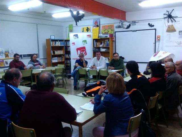 Este miércoles, en la biblioteca del CPIP Gerónimo Belda, tenía lugar un encuentro entre asociaciones y clubes deportivos y el candidato a la alcaldía de Ganar Cieza/IU-AS, que estuvo acompañado por el n° 8 de la candidatura, el exatleta Ignacio Núñez, y el actual portavoz municipal de IU-Verdes Antonio Penalva.