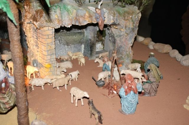 Para su primer montaje se encargaron al belenista murciano de reconocido prestigio José Griñán los grupos y figuras principales (alrededor de cien) de notable estilo hebreo, que proporcionaron al belén su particular identidad; a éstas se han venido añadiendo posteriormente obras de belenistas tan importantes como José Alarcón, Miguel Amo, Viuda de Galán, Manuel Nicolás Almansa, Ramírez y José Luis Mayo, además de otras del propio Griñán, hasta reunir las más de cuatrocientas piezas con que actualmente cuenta; y a las que hay que sumar en los últimos tres años los 'Misterios' realizados y cedidos para este belén por el afamado escultor e imaginero local José Antonio Yuste Navarro, unas piezas originales en su factura y composición que acrecientan, todavía más, la calidad de este montaje.