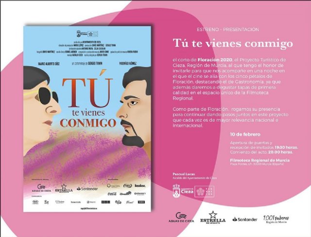 La Filmoteca Regional Francisco Rabal es el lugar elegido para el estreno-presentación del cortometraje 'Tú te vienes conmigo', del director ciezano Sergio Town, que forma parte de la promoción del proyecto turístico Floración 2020.