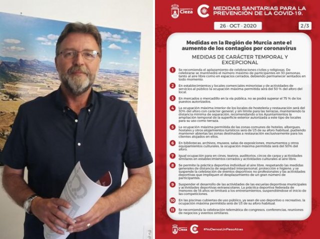 Saorín, concejal de Sanidad y Salud Pública del Ayuntamiento de Cieza, precisa que estas medidas, tomadas por el Gobierno regional, tienen carácter temporal y excepcional