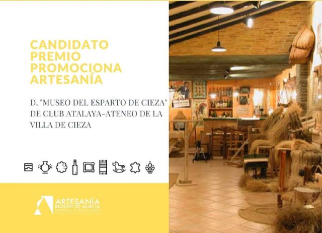 El Museo del Esparto de Cieza ha quedado entre los cuatro finalistas seleccionados para el Premio Regional de Artesanía, convocado por la Comunidad Autónoma, en la modalidad "Promoción de la Artesanía para entidades privadas". Una modalidad que, dotada con 1.500 euros, busca reconocer y premiar los mejores programas, campañas o iniciativas de promoción de esta actividad.