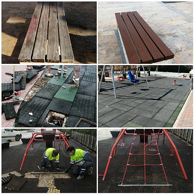 Saorín ha explicado que en los últimos días se está llevando a cabo un repaso integral a cinco parques del municipio en varios órdenes. Así, se ha procedido al saneamiento de vallas de forja y aluminio y colocación de mobiliario urbano, concretamente la colocación de bancos nuevos por los que existían ya que presentaban un importante deterior.