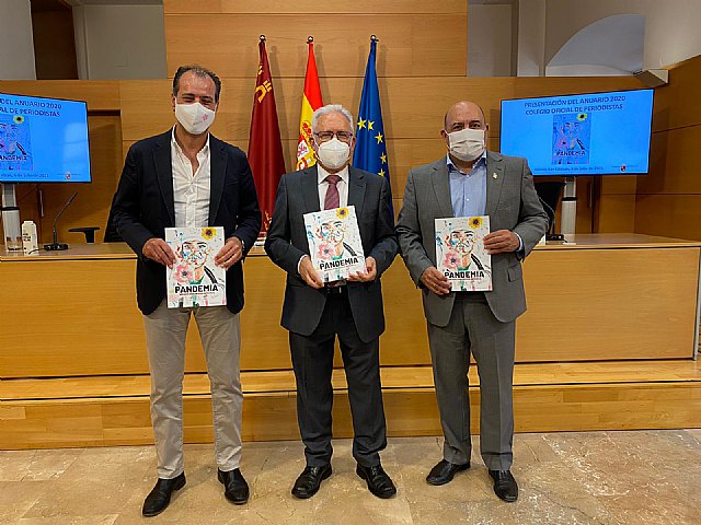 El Colegio Oficial de Periodistas de la Región de Murcia ha presentado, en el Palacio de San Esteban, su Anuario 2020. La publicación, bajo el título 'Pandemia', es un exhaustivo recorrido del año marcado por la catástrofe mundial, con una mirada atenta a las repercusiones en la Región de Murcia y en el resto de España. A lo largo de sus páginas se recogen crónicas, reportajes, artículos y entrevistas sobre los acontecimientos más importantes ocurridos en este último año, con una portada que mira al espectador a través de los ojos de una sanitaria, "una mirada cargada de preocupación, pero también de esperanza, con la promesa de un nuevo comienzo", declaraba el decano de los periodistas y director de la publicación, Arturo Andreu.