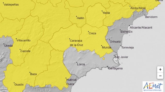 Fuentes del Ayuntamiento de Cieza informan de que la Agencia Estatal de Meteorología ha emitido avisos por fenómenos meteorológicos adversos para este miércoles en la Región, ante la posibilidad de tormentas y fuertes lluvias, que pueden alcanzar los 25 litros por metro cuadrado en una hora en el Noroeste y el Altiplano, y a 15 litros por metro cuadrado en una hora en la Vega del Segura, incluida la zona de Cieza.