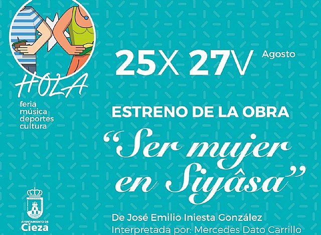 Con motivo de la programación de la Feria y Fiestas de San Bartolomé, el pasado 25 de agosto tuvo lugar el estreno de la pieza teatral 'Ser mujer en Siyâsa', del escritor José Emilio Iniesta, un monólogo protagonizado por la acrtiz ciezana Mecedes Dato en el Museo Siyâsa, "donde se representó el papel de la mujer en la historia muslmana de Cieza desde la perspectiva de la angustia y el deseo", informa la Conecjalía de Mujer e Igualdad de Oportunidades.