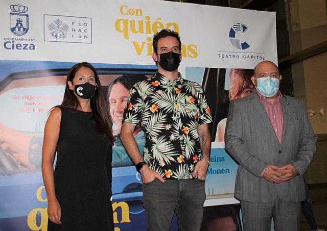 El cineasta Hugo Martín Cuervo asistió este jueves al preestreno de su primera película, 'Con quién viajas', que tuvo lugar en el Teatro Capitol ante unos 300 espectadores. En la presentación estuvo acompañado por el alcalde de Cieza, Pascual Lucas, y la concejala de Cultura, Conchi Villa.