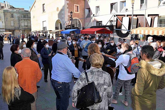 La plaza Mayor de Cieza acogió el domingo por la mañana la concentración de cuadrillas llegadas del Pelibayo de Albacete, Grupo Virgen de la Salud de Archena, Coro y Rondalla de Lorquí, Animeros de Cehegín, Molinico Alguaceño, Sonadors de Crevillente y Ronda Alcucera de La Roda, dentro del encuentro incluido en el programa de la XI Fiesta de las Tradiciones organizada por la Peña El Caracol. Tras ser recibidos sus integrantes por el alcalde y concejala de Cultura, se desplazaron hasta la Esquina del Convento, donde actuaron animando el primer mercadillo artesanal post-pandemia promovido por la Concejalía de Artesanía con la colaboración de la asociación Cieza Artesana y que estuvo dedicado al esparto, con demostración en vivo de trenzado manual. Numerosos puestos vendieron productos artesanos de diversa índole, incluida la gastronomía.