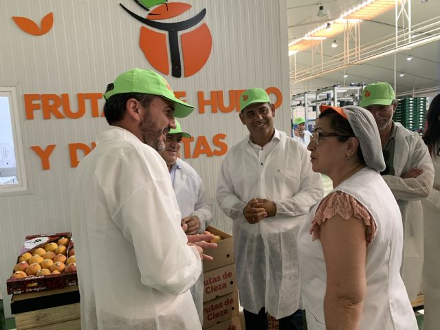 El consejero de Agua, Agricultura, Ganadería, Pesca, Medio Ambiente y Emergencias, Antonio Luengo, visitó hoy la cooperativa Thader Cieza donde se llevó a cabo el primer etiquetado de productos con el sello 'IGP Melocotón de Cieza' que acredita la calidad diferenciada del mismo y que se podrá emplear a nivel nacional, una vez se ha recibido la aprobación definitiva, e internacional cuando se obtenga el certificado pertinente de la Unión Europea.