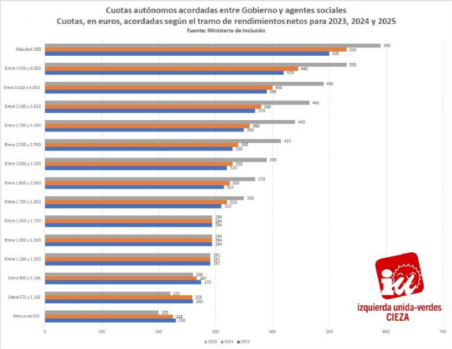 IU-Verdes de Cieza aplaude la reforma de los autónomos para que coticen según sus ingresos reales