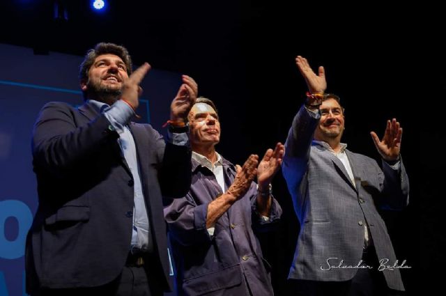 José María Aznar, el mejor presidente de España, acompañado de su esposa Ana Botella, primera mujer alcaldesa de Madrid, Fernando López Miras, el próximo presidente de la Región de Murcia y Tomás Rubio el próximo alcalde de Cieza, llenan el teatro Capitol de Cieza en el acto central de la campaña del Partido Popular para las elecciones municipales del próximo 28 de Mayo.