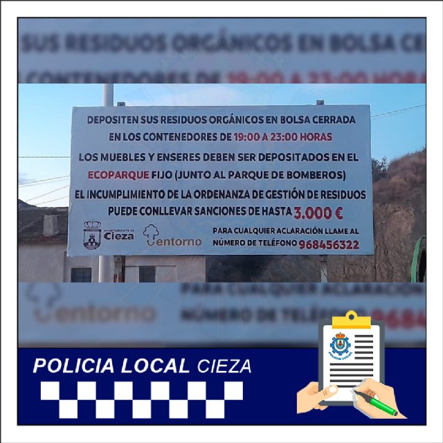 Fuentes municipales del Ayuntamiento de Cieza advierten de que se están colocando carteles extra de grandes dimensiones en las vías urbanas junto a los contenedores de basura.