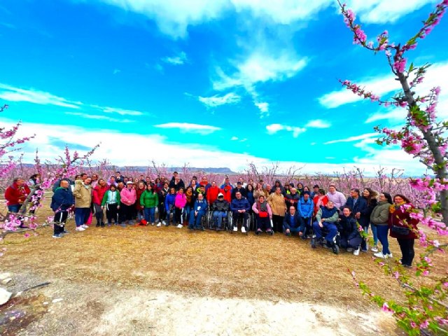Alrededor de 110 personas con discapacidad de Cieza participaron la pasada semana en una jornada de convivencia dentro de las actividades municipales auspiciadas por el Ayuntamiento en el programa de Floración. Usuarios, familiares y técnicos de la Nueva Fundación Los Albares, ASCOPAS, AFEMCE, ACIFAD y Tocaos del Ala realizaron una visita accesible sin barreras a los campos en flor en el Soto de la Zarzuela, pudieron conocer el Centro de Interpretación de la Naturaleza, y concluyeron la jornada con un ágape acto de convivencia en CICOLA.