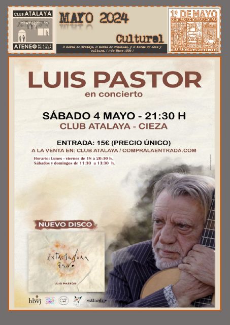 El cantautor extremeño, una de las voces más comprometidas de la música española de los últimos 50 años, regresa al Club Atalaya para presentar su último disco 'Extremadura Fado' el sábado 4 de Mayo a las 21:30 horas.