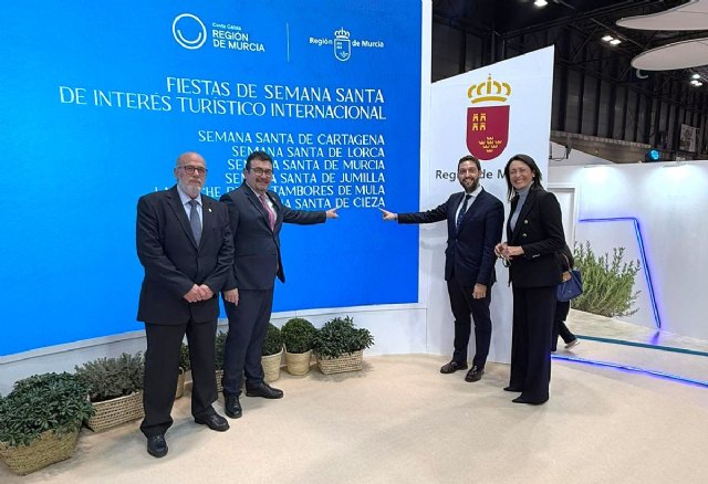 En el pabellón de la Región de Murcia en IFEMA este miércoles, junto a los desfiles de la Comunidad Autónoma que están catalogados de Interés Turístico Internacional. Hasta Madrid se desplazaron el alcalde, Tomás Rubio; la concejala de Semana Santa, María Turpín, y el presidente de la Junta de Hermandades Pasionarias, Joaquín Gómez.