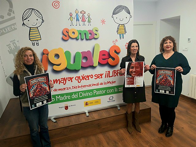 En la presentación Pino ha estado acompañada por las actrices Lola Balsalobre y Marta Ochando, protagonistas de la pieza teatral 'Todas somos Mari Carmen' que se representará el 12 de marzo, a las 20.00 horas, en el Teatro Capitol, donde también tendrá lugar la celebración de la Gala 8M con la entrega de los reconocimientos anuales a las mujeres más destacadas y la lectura del manifiesto. Media hora antes, la marcha del 8M saldrá desde la Esquina del Convento y recorrerá las calles Paseo, Gran Vía, Buen Suceso y Plaza de España para terminar en las puertas del Teatro Capitol.