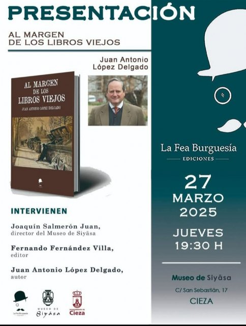 El Museo Siyâsa acogerá este jueves, a las 19.30 horas, la presentación del último libro del académico Juan Antonio López Delgado (Murcia, 1950) que, bajo el título 'Al margen de los libros viejos' (La Fea Burguesía Ediciones, 2025), contará con las intervenciones del director del Servicio Municipal de Museos, Joaquín Salmerón Juan, y el editor Fernando Fernández Villa.