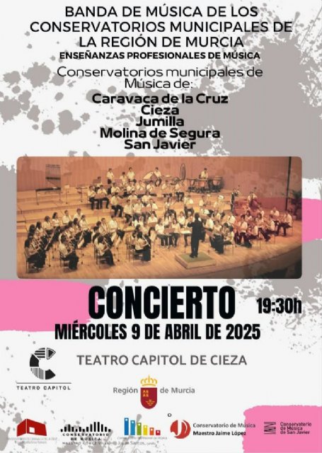 En la actuación intervendrán alumnos de enseñanzas profesionales de música que pertenecen a los conservatorios municipales de Caravaca de la Cruz, Cieza, Jumilla, Molina de Segura y San Javier.