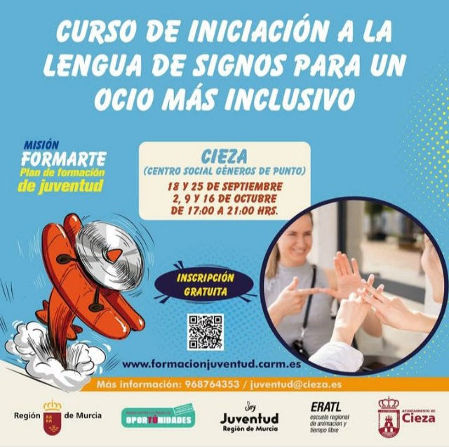 La Concejalía de Juventud organizará un curso de iniciación a la lengua de signos que tendrá lugar los días 15 y 25 de septiembre y 2, 9 y 16 de octubre en el Centro Social Géneros de Punto.