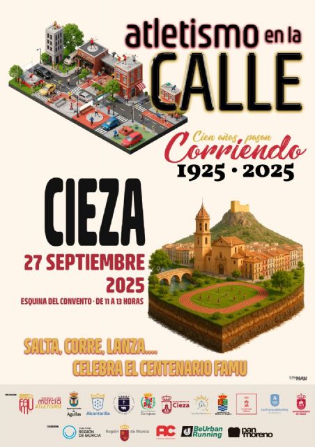 Tras la primera jornada, el pasado mes de agosto en Las Torres de Cotillas, este próximo sábado llega la siguiente cita con “Atletismo en la Calle”, un proyecto que la Federación de Atletismo de la Región de Murcia está desarrollando durante los últimos meses de este año centenario, con el objetivo de llevar nuestro deporte más allá de las pistas. En esta ocasión será con Cieza como sede, cuya Esquina del Convento se inundará de atletismo entre las 11:00 y las 13:00h., con la colaboración de la Concejalía de Deportes del Ayuntamiento de Cieza.