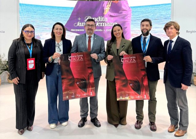 Los representantes del Gobierno ciezano han estado presentes en el acto de entrega de los premios SICTED y en la presentación de Fiestas de Semana Santa de Interés Turístico Internacional, 'Bendita Santa Semana', donde, junto a la consejera de Cultura, Turismo, Juventud y Deportes de la Comunidad de Murcia, Carmen María Conesa, han tenido la oportunidad de mostrar el cartel de las procesiones ciezanas de este año. Se trata de la imagen titulada 'La mirada', del fotógrafo local Javier Morote, ganadora del XXXVIII Concurso de Carteles Semana Santa de Cieza 2026.