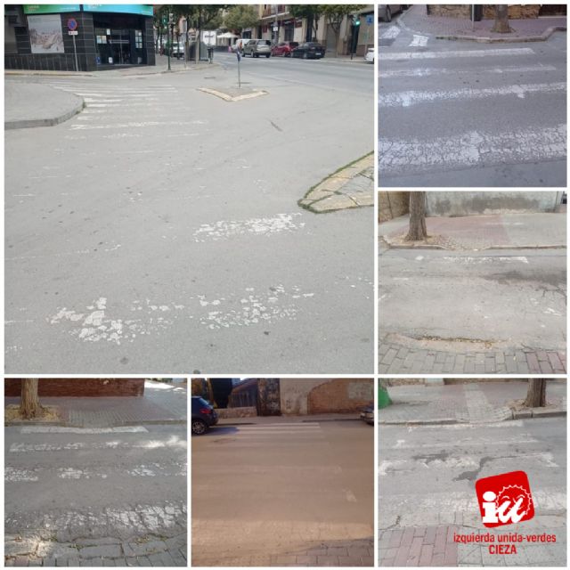 Mediante un comunicado de prensa, IU-Verdes de Cieza denuncia el estado más que evidente de abandono en el que se encuentran muchos pasos de peatones del municipio. No hace falta ser técnico ni experto en seguridad vial: basta con cruzar la calle para comprobar que, en muchos casos, las líneas están prácticamente borradas. Y cuando la pintura desaparece, la seguridad también. Por lo que ha apremiado al alcalde Tomás Rubio a que "ponga a trabajar" la máquina para su repintado, como norma de seguridad básica para el tráfico rodado y especialmente para los ciudadanos que los cruzan.